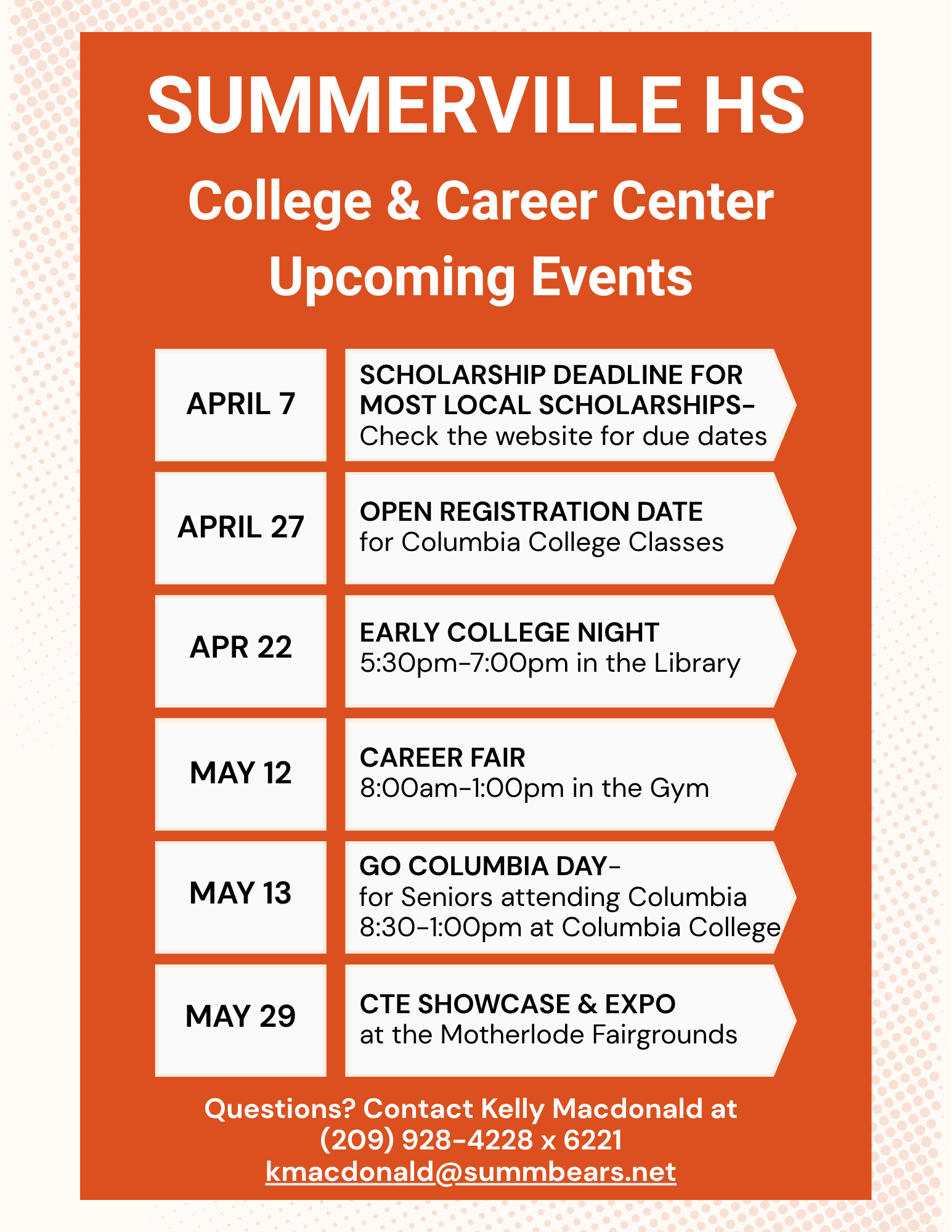 - Stop by and meet the new College and Career Counselor ~ Kelly MacDonald. Located in the College and Career Center in the Library.
