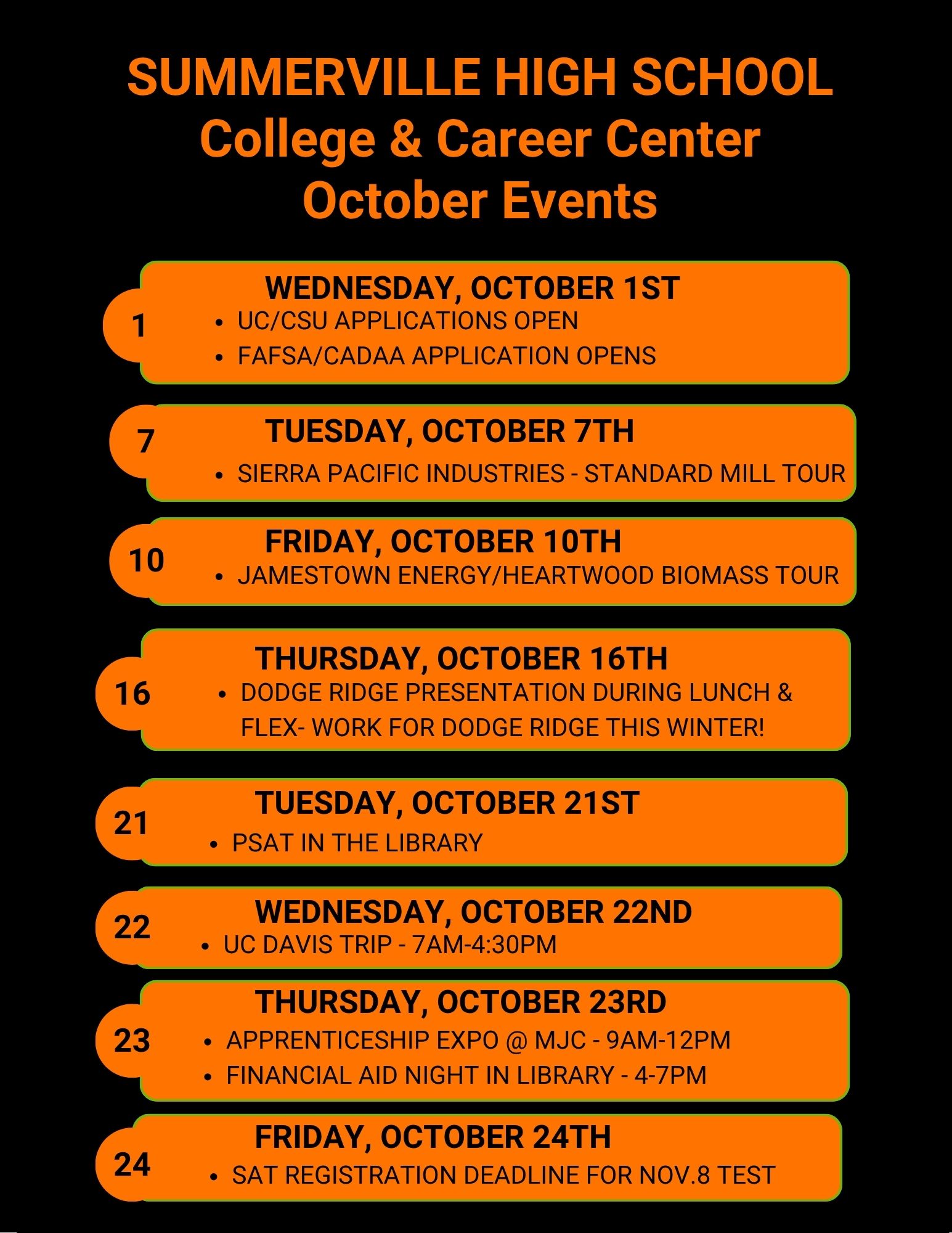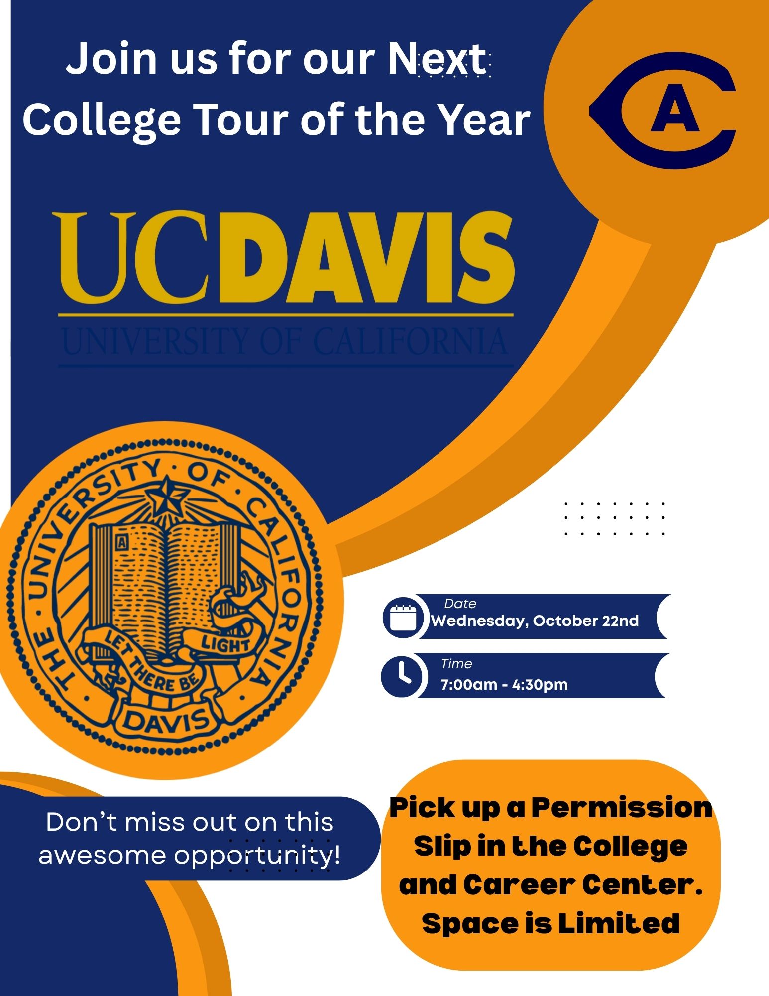 Stop by the College and Career Center to pick up a permission slip. Permission Slips due by October 8th.